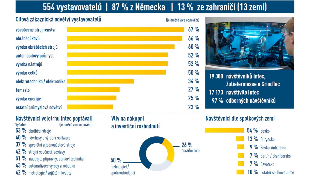 Intec je jedním z předních mezinárodních veletrhů kovoobrábění. Veletrh, který se koná v tradičním průmyslovém regionu charakteristickém zpracovatelským průmyslem, obecným i speciálním strojírenstvím, automobilovým průmyslem i renomovanými výzkumnými institucemi, je efektivní a prakticky orientovanou komunikační platformou jak pro globálně aktivní lídry v oboru, tak i pro inovativní a na řešení orientované malé a střední podniky z celého Německa a Evropy.